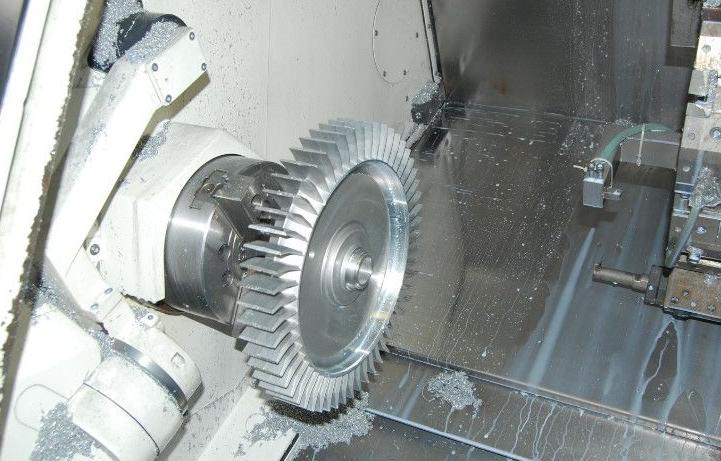 上图为风机叶轮的车床精加工打磨切割