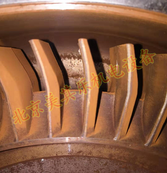 拆开之后,如下图所示:可以看到内部像是涂了一层东西,而且叶轮外沿有很明显擦划的痕迹,把叶轮取下来后,内壁也是同样的情况。