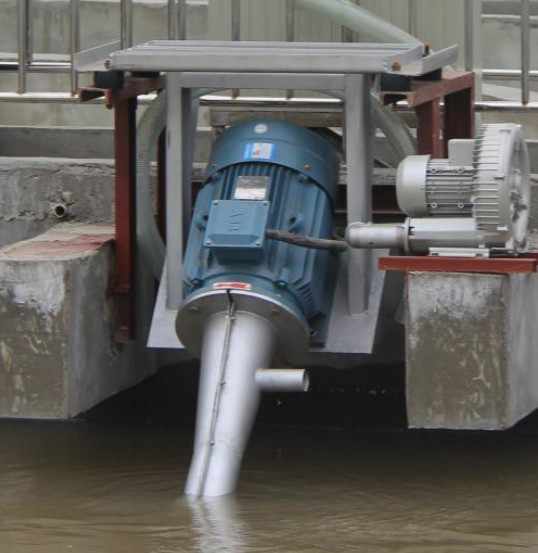 优点:通过螺旋桨制造的低压区,这样有效提高高压鼓风机输送空气水深,从而突破高压鼓风机或罗茨鼓风机无法输送深度的极限。