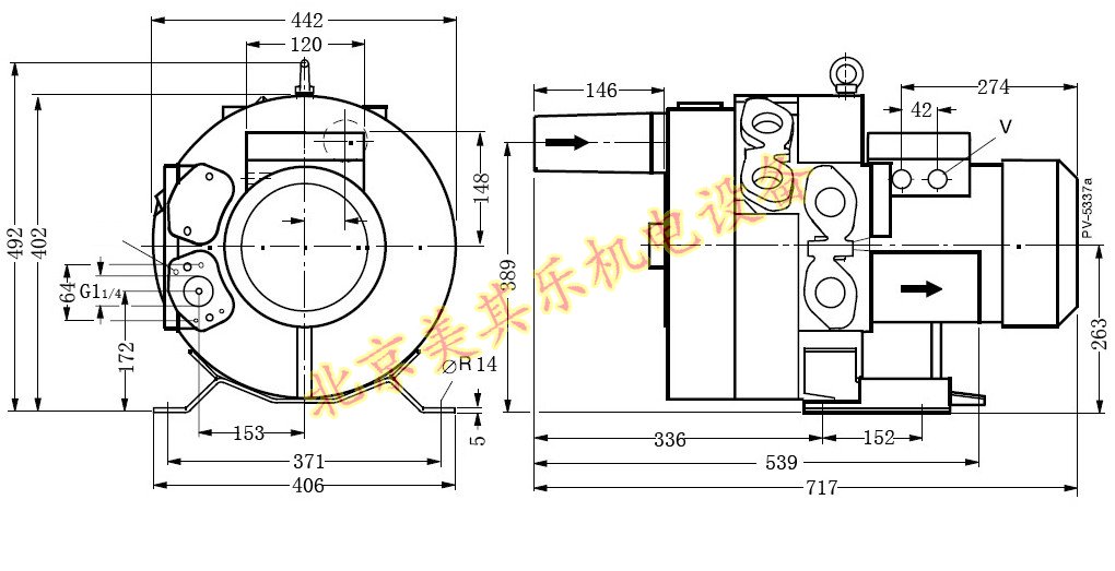 4GH630/7.5kw高压鼓风机尺寸图:
